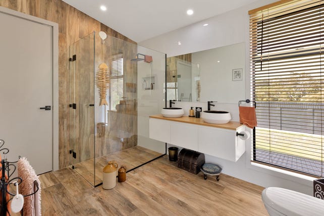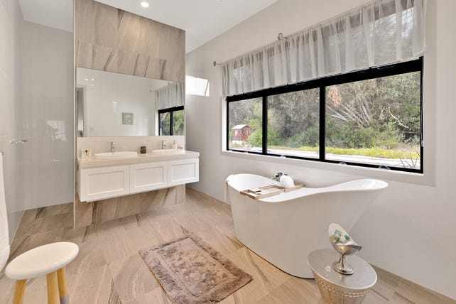 The main residence comprises a two-Storey home featuring 4 bedrooms, a dedicated cosy library nook and 2.5 bathrooms with floor to ceiling tiles. The downstairs bathroom boasts a luxurious full-size bath with serene bushland views and a spacious walk-in shower.