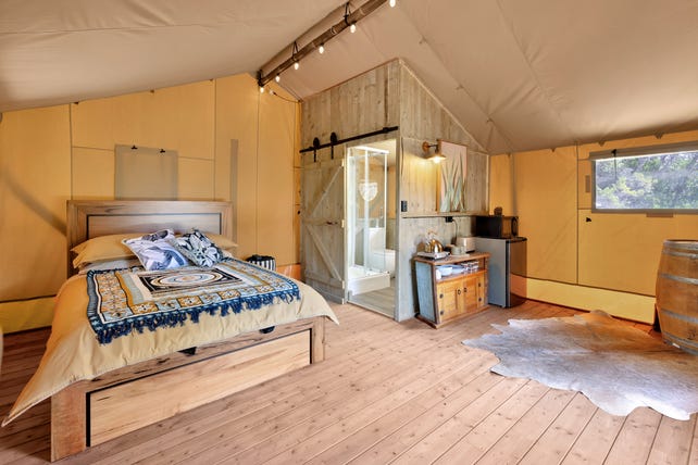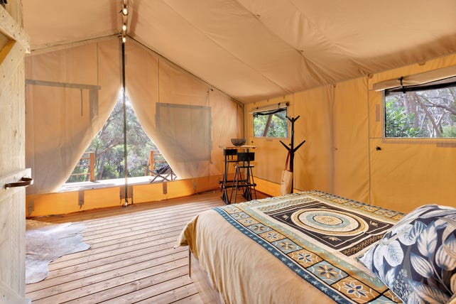 The grounds are irrigated by a equipped bore plus 500-gallon tank on glamping tent.