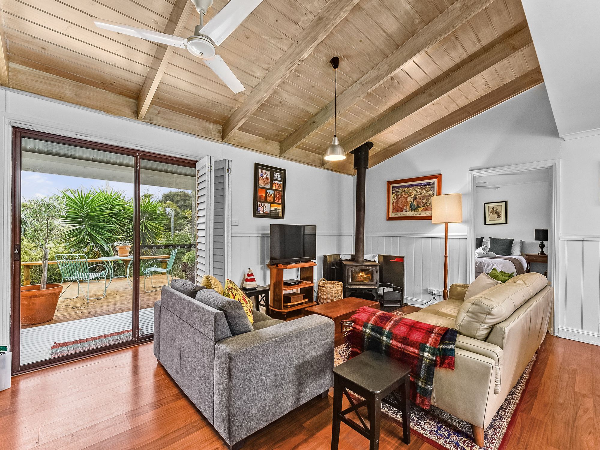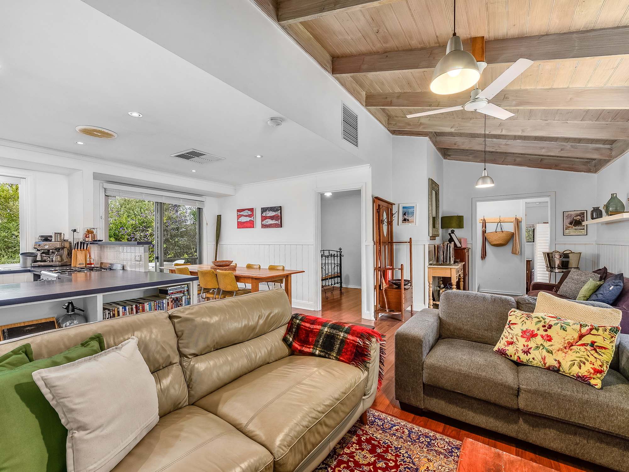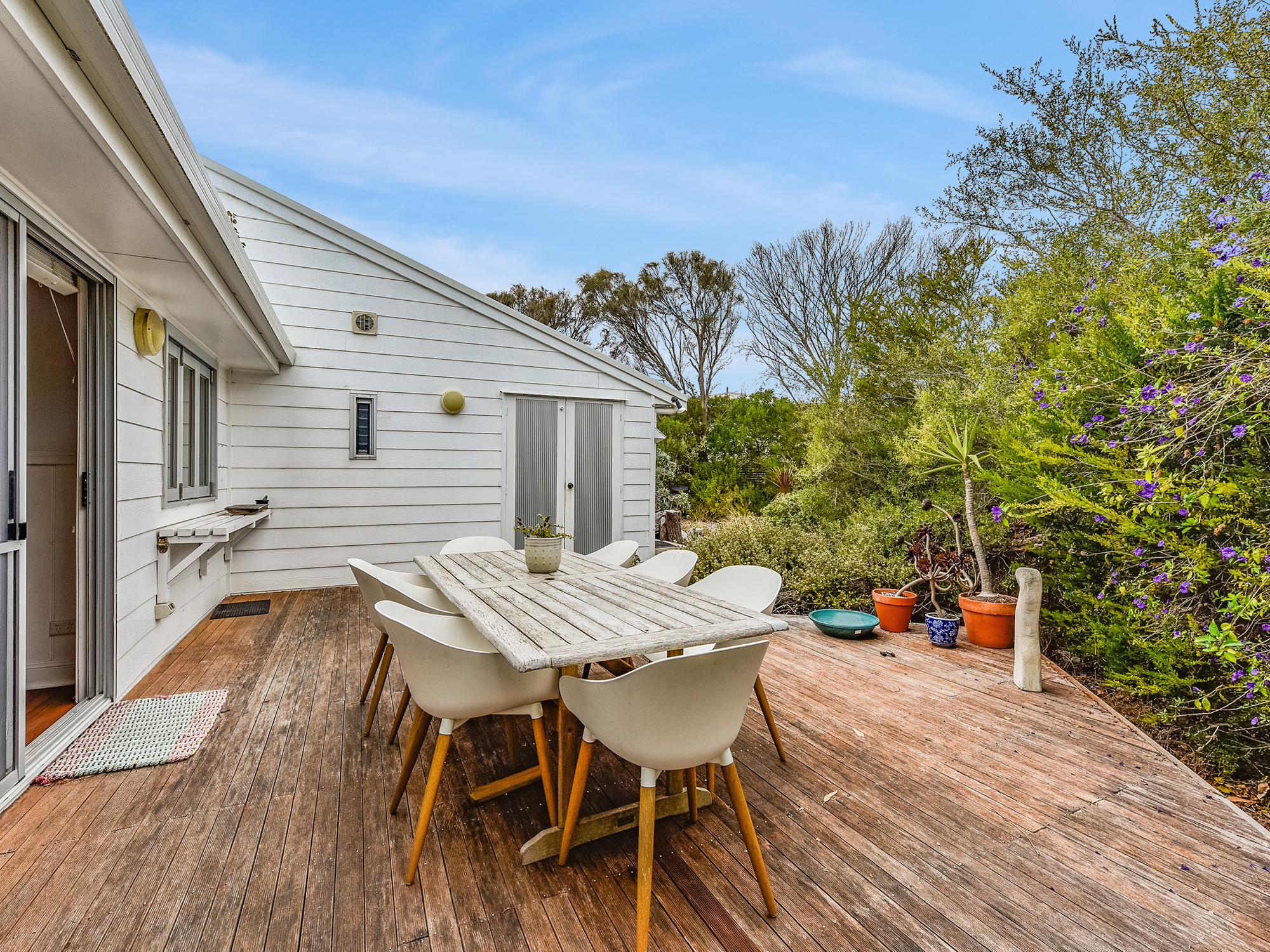 Vintage Vibes At The Seaside 44 Powell Ave is a cosy, comfortable, 4-bedroom cottage in pristine Robe known as The WardRobe. It's currently run as a short-term holiday rental with an emphasis on social interaction, reconnection for family and friends. The home is a spilt level, featuring an upstairs loft that currently is used as the 4th bedroom. This space is a beautiful sunlit room featuring a balcony, polished timber floors and chapel ceiling. The loft has endless possibilities, second living space, art studio, home office. The heart of the home is located on the ground level consisting of 2 bathrooms both appointed with bath, shower and toilet, open kitchen with servery out to the outdoor entertaining area, dining area, 2 bedrooms, sitting area plus open lounge area with wood fire. The space is warm and cosy throughout winter with the fire and cool through summer with the AC and lovely air flow through the home with the sliding doors located at the front and back of the home. The 3rd bedroom/rumpus room is on the base level of the home featuring glass doors outside and storage under the stairs. The home has front and rear entertaining decks, outdoor shower, lock up storage for surfboards, garden items, push bikes and your extra bits and pieces. Dual driveway, enclosed yard, private front deck. The WardRobe is sold walk in walk out excluding a few small items. No better location for your next home or beach house; 200m from Robe's famous Long Beach. The town centre is 5mins by car or 20-30 minute walk along the coastal trail.